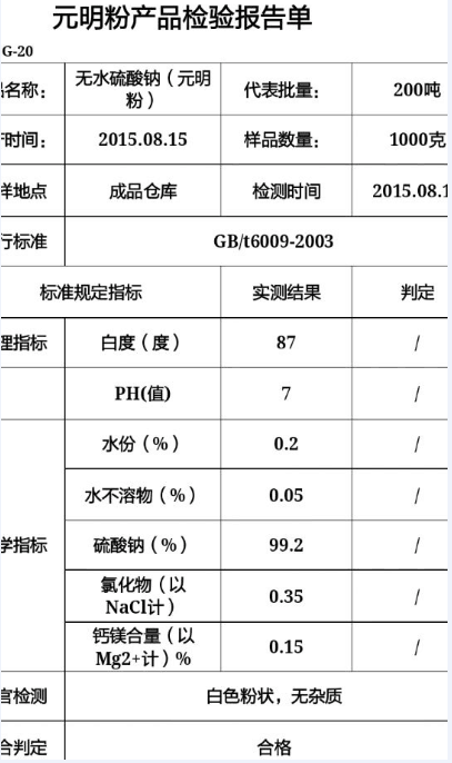 二、元明粉指標(biāo)